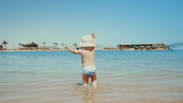 在阳光灿烂的日子里看着相机的小男孩 独木舟呆在海水里 图库视频影像 C Stockbusters