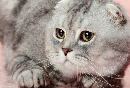 ふわふわ灰色美しい大人の猫 品種スコティッシュ フォールド 非常にクローズ アップの肖像画 の写真素材 画像素材 Image